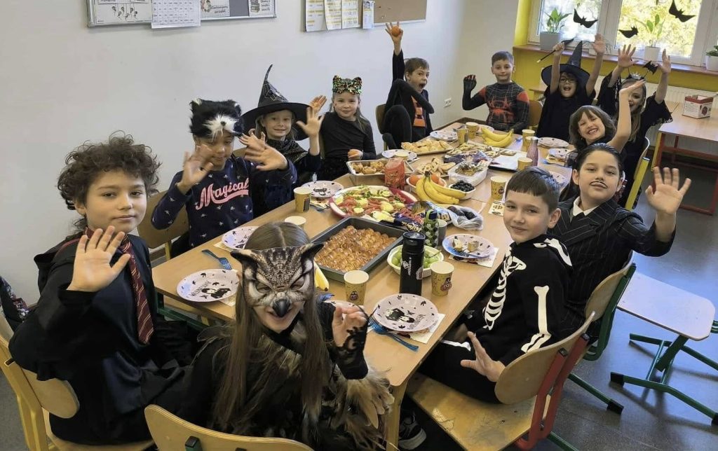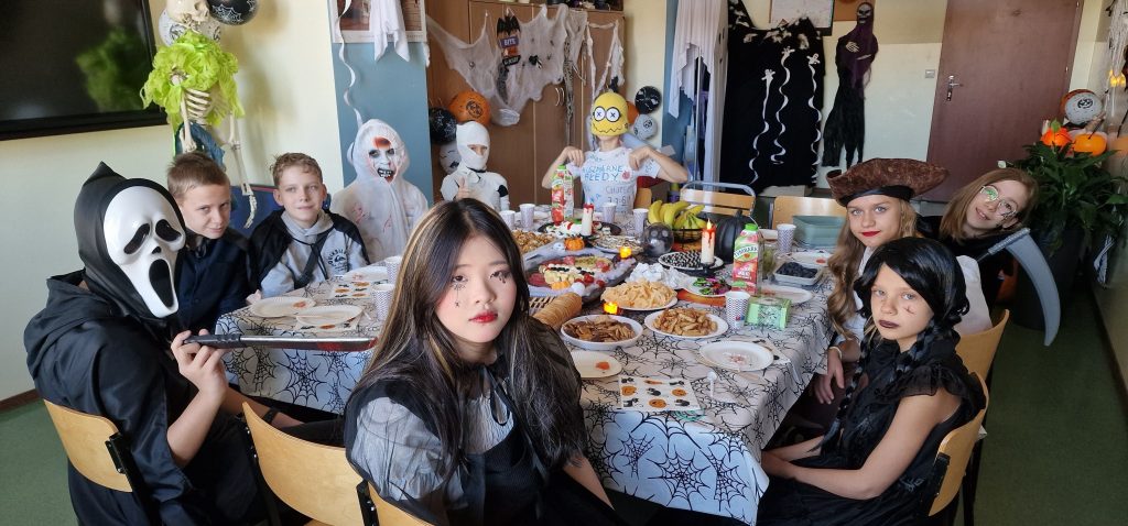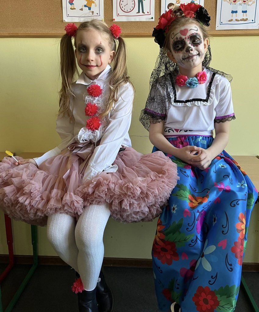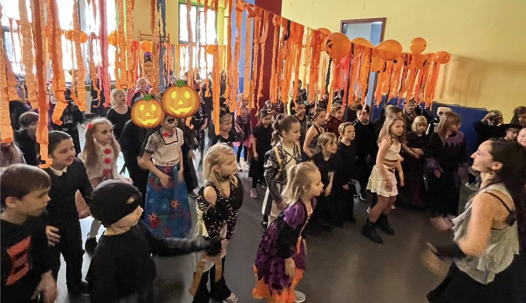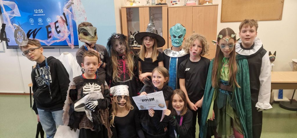 W naszej szkole odbył się wyjątkowy Bal Halloween, który dostarczył uczniom mnóstwo radości i niezapomnianych wrażeń. Korytarze wypełniły się fantastycznymi postaciami – można było spotkać czarownice, duchy, wampiry oraz różnorodne potwory. Były tańce, konkursy oraz słodki poczęstunek utrzymany w halloweenowym klimacie, a atmosfera sprzyjała wspólnej zabawie i śmiechowi.