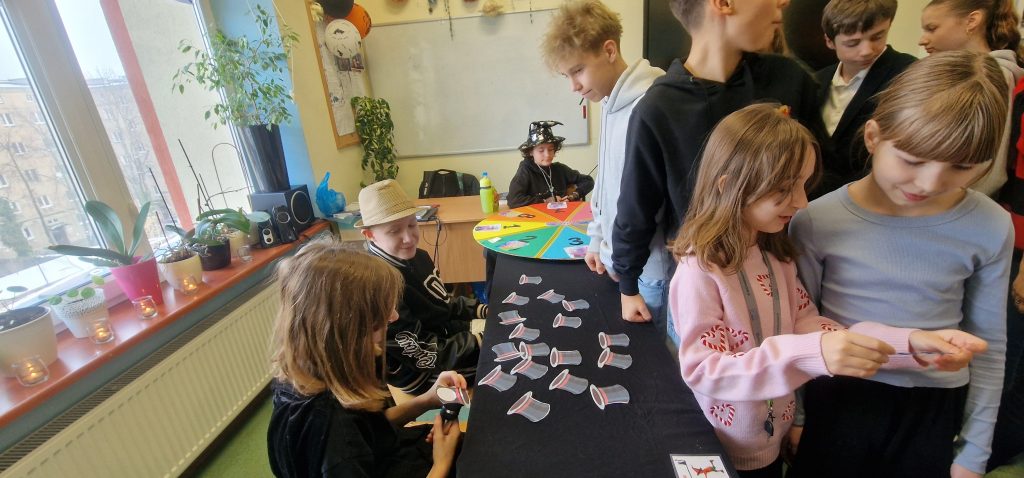 Dużą popularnością cieszyły się także ciasteczka z wróżbami przygotowane przez klasy 6b, 5b i 8b, które wzbudziły entuzjazm zarówno wśród uczniów, jak i nauczycieli. Dziękujemy wszystkim zaangażowanym w organizację tego dnia – wasza kreatywność i energia sprawiły, że Andrzejki były naprawdę wspaniałe!