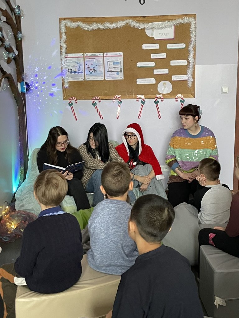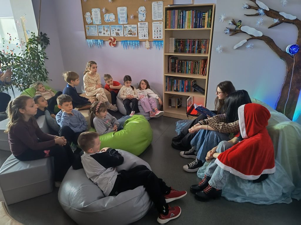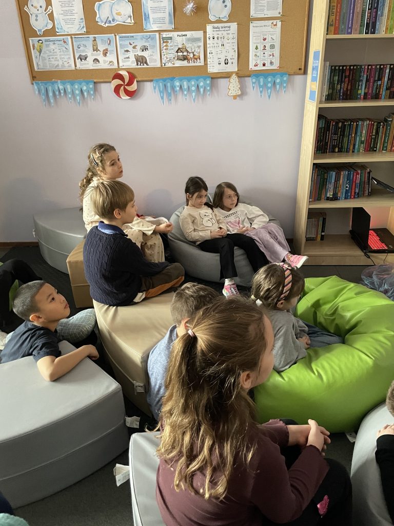 W poniedziałek nasza szkolna biblioteka zamieniła się w miejsce pełne świątecznych historii z różnych zakątków świata. Uczennice SEI w Łodzi czytały uczniom klasy 1a opowieści o tym, jak obchodzone są Święta w innych krajach. Dzieci poznały m.in. julbocka, dowiedziały się, kto wynalazł szklane bombki oraz skąd do Holandii przypływa Sinterklaas.