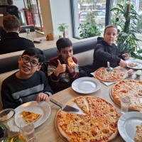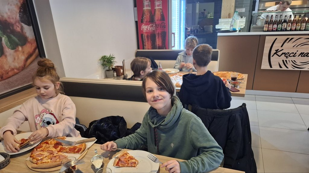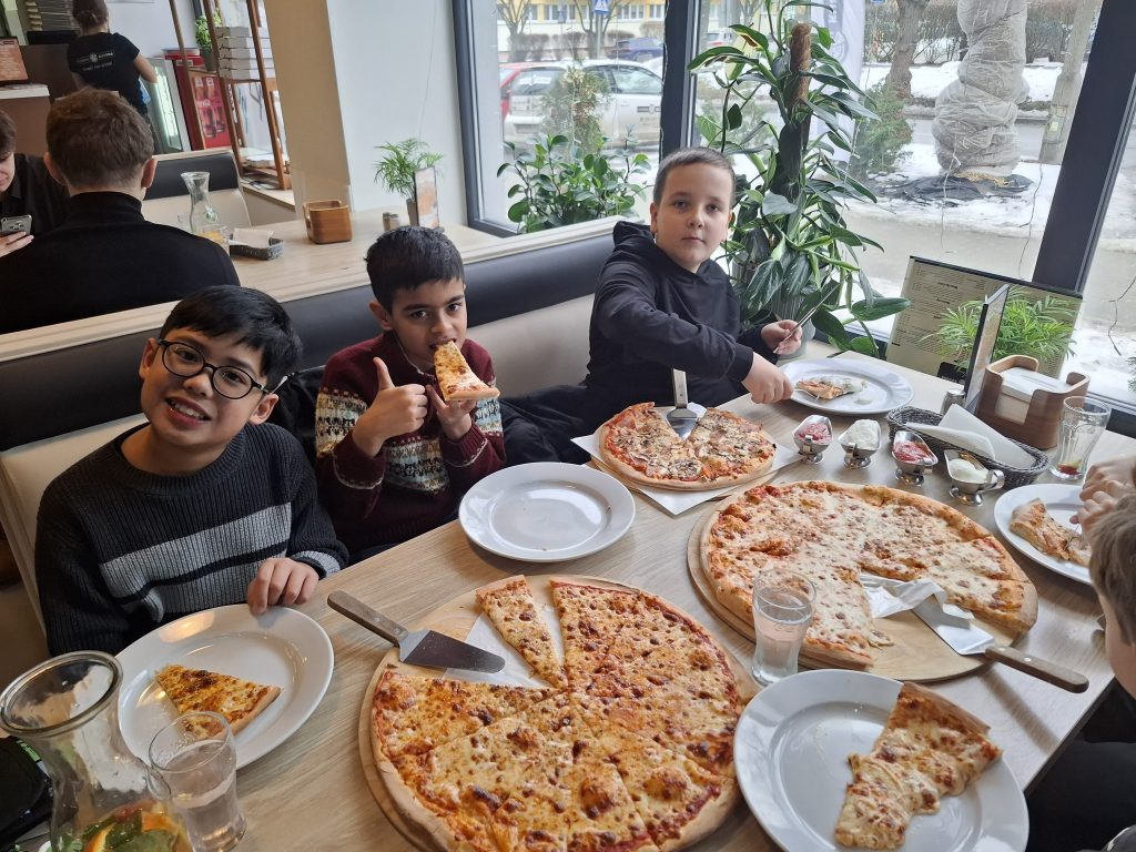 Kto powiedział, że ułamki są trudne? Klasy 4a i 4b udowodniły, że nauka matematyki może być naprawdę… smaczna! Podczas wyjątkowej lekcji uczniowie zamienili pizzę w praktyczne pomoce dydaktyczne. Precyzyjnie dzielili ją na połówki, ćwiartki oraz bardziej złożone części, ćwicząc zarówno liczenie ułamków, jak i dokładność. Z dużym zaangażowaniem obserwowali, jak z części powstaje całość, a nauka przez doświadczenie okazała się niezwykle skuteczna. Najprzyjemniejszym elementem zajęć była oczywiście „kontrola jakości” efektów pracy. To była matematyka, którą zapamięta się na długo!