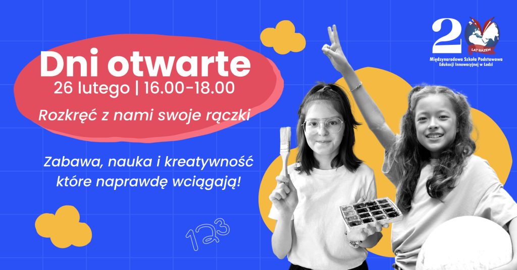 Szukasz miejsca, w którym Twoje dziecko z radością będzie chodziło do szkoły? Wybór placówki to jedna z najważniejszych decyzji dla rodzica, dlatego zapraszamy Was za kulisy Międzynarodowa Szkoła Podstawowa. Podczas spotkania pokażemy, jak łączymy nowoczesną edukację z ciepłą, domową atmosferą. W programie przewidziane są kreatywne warsztaty „Rozkręć z nami swoje rączki”, spacer po nowoczesnych salach oraz kawa i szczera rozmowa z nauczycielami o przyszłości dzieci. Spotkanie odbędzie się 26 lutego o godz. 16:00 przy ul. Pomorskiej 83/85 w Łódź.