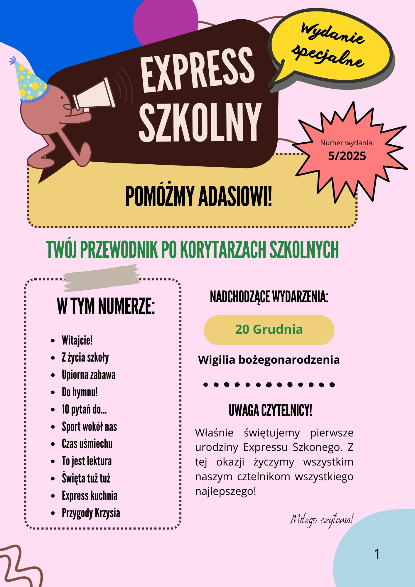 To miejsce, które łączy uczniów, nauczycieli oraz całą społeczność szkolną, umożliwiając dzielenie się pasjami, wydarzeniami i pomysłami. Znajdziecie tutaj każdy numer gazetki, który możecie przeczytać zarówno w szkole, jak i w domu. Dołączcie do naszej strony i bądźcie na bieżąco z tym, co dzieje się w szkole!